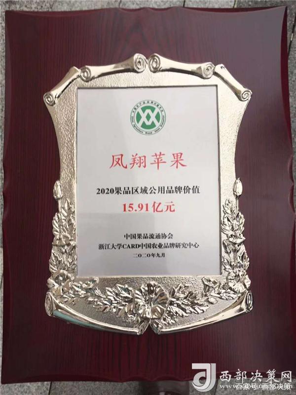 “‘凤翔苹果’品牌价值15.91亿元,位列全国第60位。”9月9日,在广东佛山召开的第六届中国果业品牌大会暨亚洲果蔬产业大会上,浙江大学CARD中国农业品牌研究中心发布了2020年中国果品区域公用品牌价值和果品企业自主品牌价值评估结果榜单,“凤翔苹果”凭借良好的果品质量和品牌形象,第5次跻身“中国果品区域公用品牌价值榜”。其中,凤翔“曹儒苹果”品牌价值达到1.08亿元,位居全国43位。