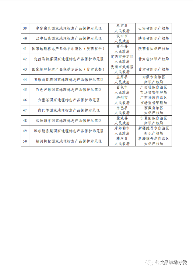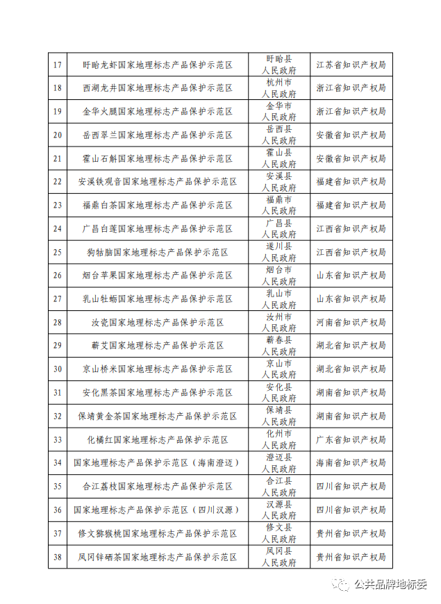 国家知识产权局关于2021年国家地理标志产品保护示范区筹建名单的公示
