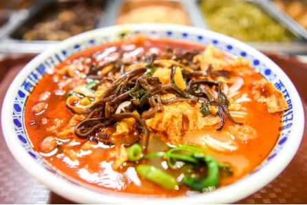 广西柳州市街边一家螺蛳粉店制作的螺蛳粉。新华社记者曹祎铭摄