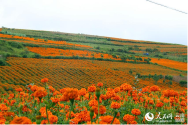 蒙自市鸣鹫镇盛开的万寿菊成为一道靓丽的风景线。人民网程浩摄