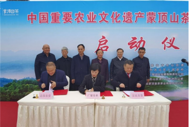 启动仪式上,举行了茶园流转签约和茶园统一管理项目签约仪式,蒙顶山茶核心区茶园原真性保护基地立碑揭牌仪式。