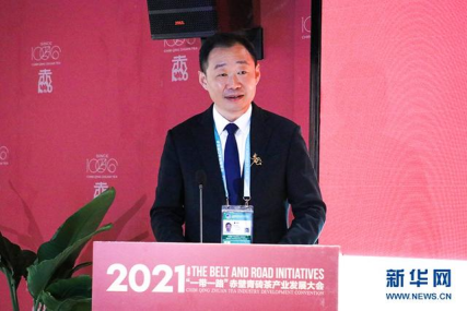 图为赤壁市委书记董方平发布赤壁青砖茶区域公共品牌VI体系。新华网发 黄河摄