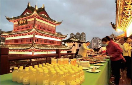 “三衢味”不仅囊括青山绿水间的好食材,还有蕴含文化底蕴、让人称道的美食制作技艺。国家级非物质文化遗产“邵永丰麻饼”制作技艺传承人柯志增甩饼上麻,精彩炫技,在好吃“三衢味”长三角鲜辣美食挑战赛(上海站)现场,引来掌声不断。上海市民、游客大饱眼福之余,品鉴“三头一掌”、衢州烤饼、衢州炒粉干等新鲜出炉、原汁原味的“三衢味”特色美食。此外,产品陈列区内的常山胡柚汁、龙游发糕、高山蔬菜等,同样让人流连忘返——它们都被打上了“三衢味”的品牌标志。