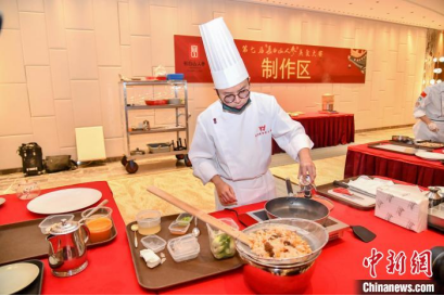 参赛厨师在制作长白山人参美食。 梁琪佳 摄