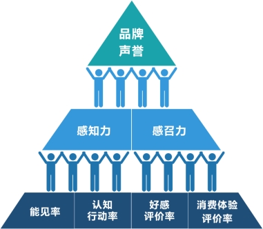 浙江大学CARD中国农业品牌研究中心主任胡晓云提出本次研究的“品牌声誉评价模型”。据该模型指出,品牌声誉是由感知力和感召力所构成,感知力由能见率和认知行动率所构成,感召力则由好感评价率和消费体验评价率所构成。