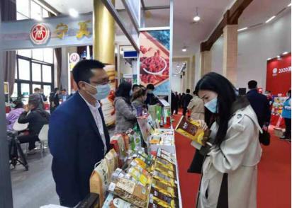 全国2020消费扶贫·贫困地区农副产品产销对接会上消费者购买宁夏小杂粮。