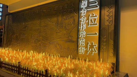 漫步安福路,可以看到街景也发生了一些变化,中国农业银行瑞安安阳支行侧面打造了一幅“三位一体”综合合作示范街的立体铜浮雕。