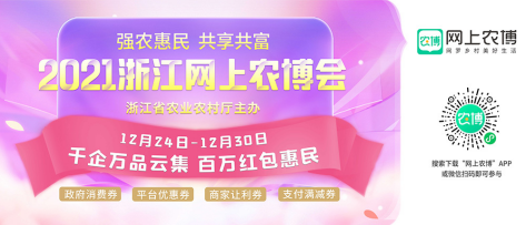 12月24日,由浙江省农业农村厅主办的2021浙江网上农博会在线上拉开帷幕。据悉,本次农博会主题为:强农惠民 共享共富,将开展农产品展销、农商对接、品牌农产品宣传推介和社区团购等活动,重点组织“三千三百”系列活动。