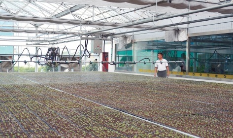 汉阴县七叶莲智慧大棚里正在进行育苗作业。