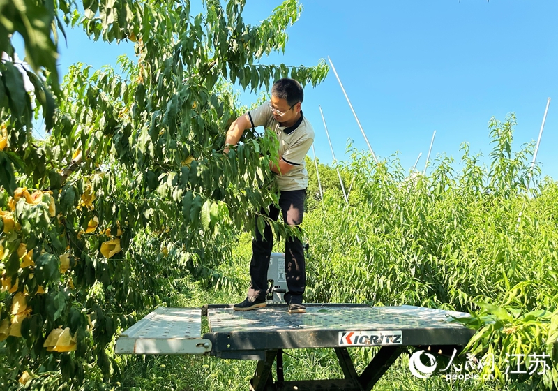 时下,江苏无锡惠山区阳山镇建勤家庭农场,“晚湖景”桃挂在枝头,这是当地最后一波夏日里的“甜蜜”。