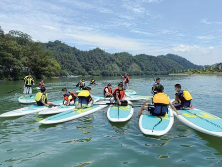 游客在衢州市开化县华埠镇金星村体验水上项目。 受访者供图