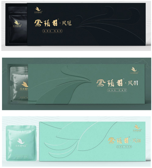 如凤冈锌硒茶,提取了“凤”的意象进行象征元素提取、象征意象建立和象征意义表达。并以“风冠”、“凤羽”、“凤翎”进行产品分级和包装设计表达。