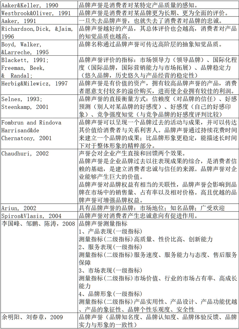 由上可知,在学者们看来,声誉指的是长时间里消费者对一个品牌所积累的评价和情感反应。