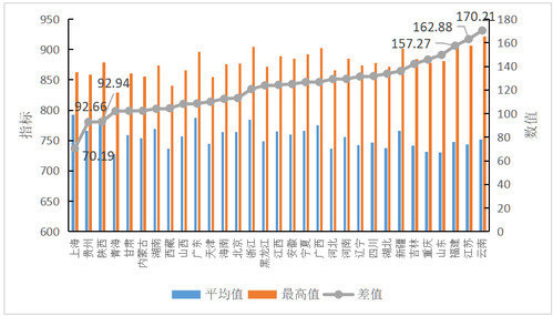 图15-8 各省市地标品牌的品牌声誉平均值与最高值差值比较