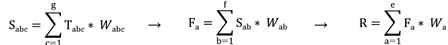 R代表品牌文化力指标总指数,Fa代表一级指标的第a个指标指数,e代表一级指标个数,Wa代表一级指标的第a个指标的权重,Sab代表第a个一级指标下第b个二级指标的指数,f代表Sab 这几个二级指标的个数,以此类推。