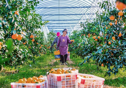 同时,晓塘乡坚持深化“产”的能力。在技术支撑方面,组建了专业农业工匠团队,拥有象山柑橘师傅11人、柑橘大师3人,推广应用设施晚熟栽培、多主干疏层式修剪等10余项先进技术,在全国率先实现鲜果周年供应。在基地建设上,晓塘乡建成国家现代农业示范基地、浙江柑橘研究实践基地、浙江省现代农业庄园等省级以上基地6个,示范带动当地2500多户“红美人”种植户水平整体提升。