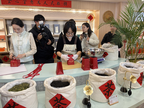 家住附近的李阿姨一边看茶一边说:“以前买散茶总怕买到假货或者是价格虚高,这里明码标价,还能先尝再买,踏实多了。”门口的公益茶桶前,几位游客接过工作人员递上的热茶,其中一位年轻人笑着说:“天冷喝上口热茶,舒服”。
