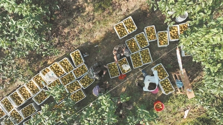 近年来,峡江翠冠梨已成为峡江县的特色产业之一,种植总面积已达到2.47万亩。图为今年盛夏,该县金坪民族乡翠冠梨种植基地,果农们正忙着采摘、装筐、搬运装车。 邱振宇摄