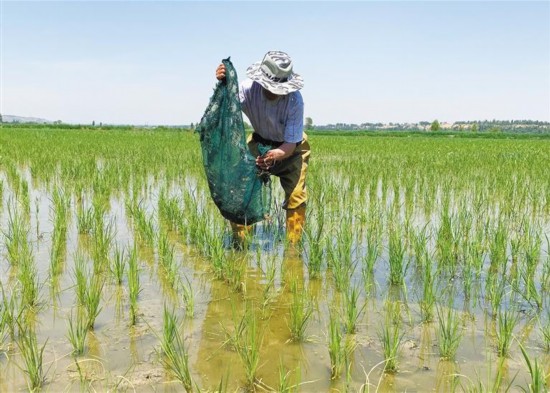 横山区响水镇驼燕沟村的村民正在往水稻田中投放螃蟹。阳光照耀在横山大地上,放眼望去,一望无际的稻田里翠色欲滴,一条条整齐的宽幅梯田上,玉米、绿豆等各种庄稼郁郁葱葱...