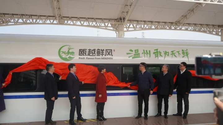 “瓯越鲜风”一路向北 温州市农产品区域公用品牌高铁冠名列车昨日首发